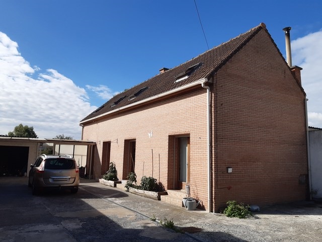 Maison individuelle rénovée en briques de 1957 avec vue sur les champs. Entrée de 5m², salon séjour de 33m² avec poêle à bois Godin et pompe Ã...