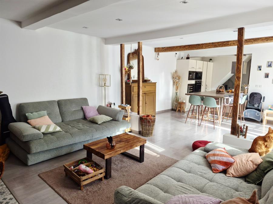En retrait de la route et au fond d'une ruelle, belle maison individuelle en briques en semi plain pied entièrement rénovée à l'esprit longère dans le centre ville ( surface habitable 105m² - Loi carrez 126m² )